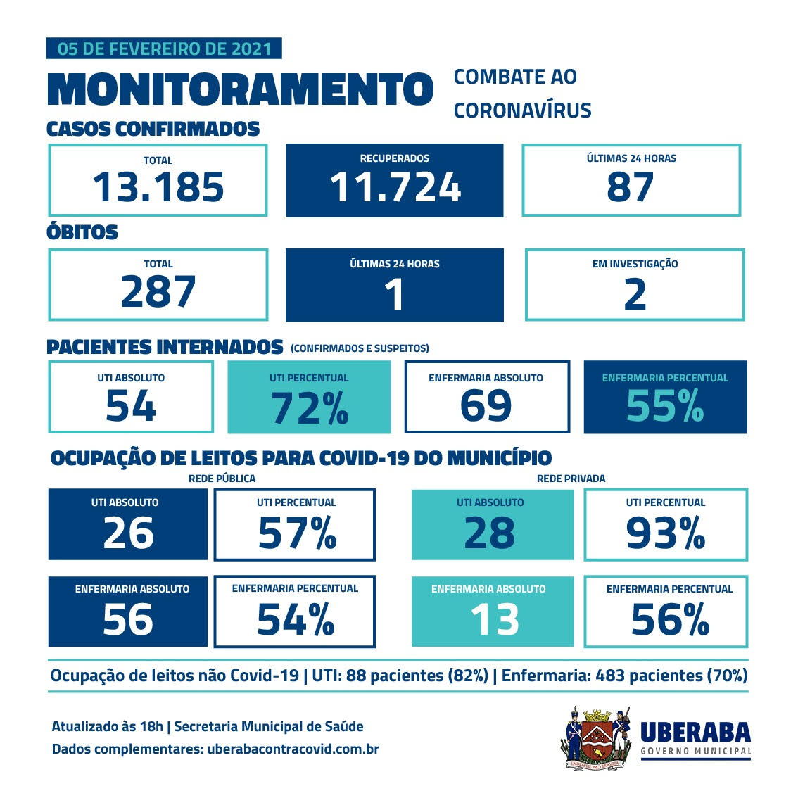 Nas últimas 24 horas, Uberaba registrou um óbito por Covid-19, conforme dados atualizados, nesta sexta-feira (5), pela Secretaria Municipal de Saúde. Trata-se de paciente do sexo masculino, de 57 anos, internado em hospital público há 14 dias.